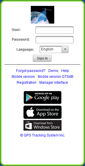 To go to the manager interface, click on the link "Manager interface". Also below are links to mobile apps for Android, iOS and Windows Store operating systems.