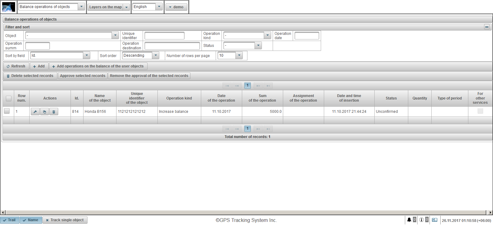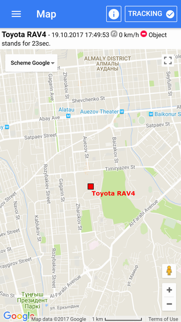 It will also appear in the "Monitoring" panel. To display the object in the center of the map, click on the object name in the list.