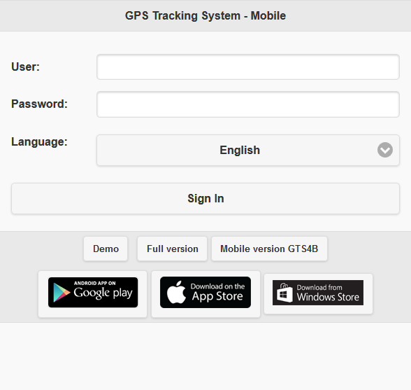 When you click on the button "Mobile version GTS4B", you will be taken to the mobile version GTS4B of the system for mobile devices.