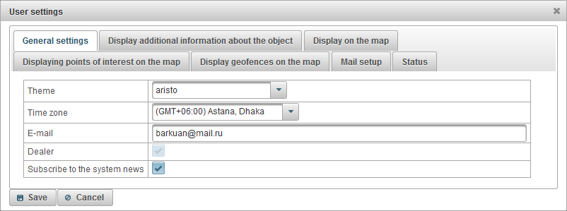 In the user settings dialog box in the "Time zone" field, specify your time zone, this is necessary to correctly display the time everywhere and click on the "Save" button.
