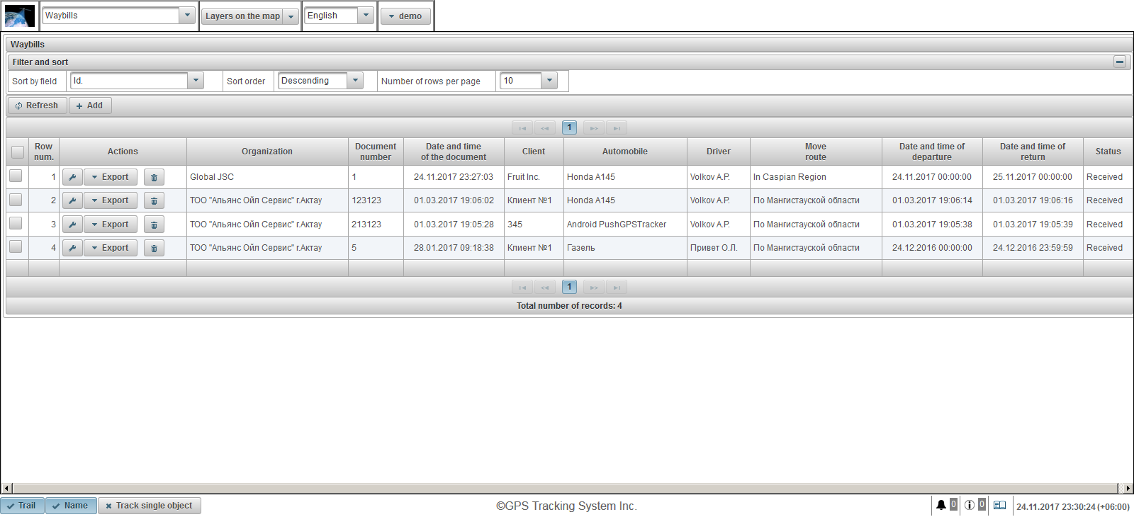 To monitor objects various automobile or personal GPS/GLONASS trackers (controllers) are used, as well as mobile apps or other devices.